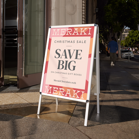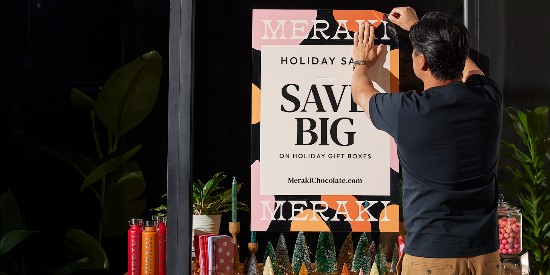 Outdoor options like A-frames, window stickers and feather flags attract attention to your shop. Inside, use roller banners, posters or table signs to highlight deals. Pair these with matching festive packaging for a cohesive brand experience.