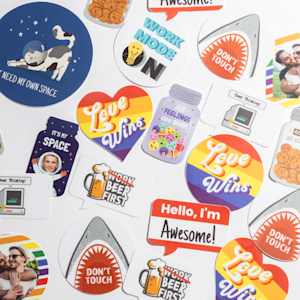 Have fun and get creative with novelty shapes such as heart, arc, jar and text bubble. You can create specific designs to match the different shapes, or let your imagination run the show. And if you want to be really unique, choose a custom shape that makes your design stand out even more. Your laptop stickers will be printed on white plastic that really makes the vibrant colour printing pop. Grab everyone’s attention while you work, with your personalised, eye-catching designs.
