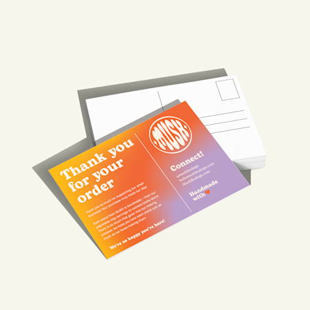 Postcards are made of thicker paper stock and are usually used for sending short messages or greetings by post. They can also be used for promotional purposes, such as announcing a sale, offering a discount or saying thank you to customers for orders.
