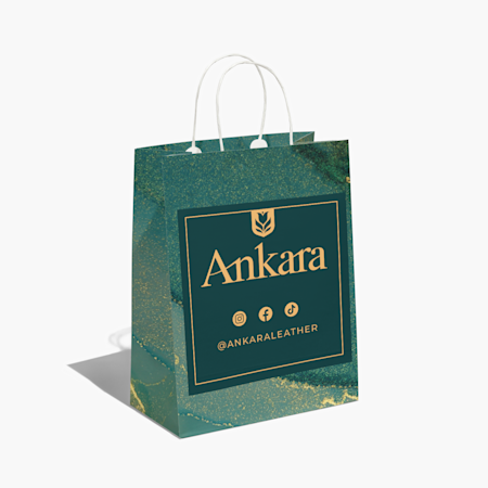 Upgrade your packaging with custom paper bags that display your brand. Handing a customer a branded paper bag with your logo is like handing them a business card, so get it noticed with our vibrantly coloured printed paper bags. Whether for retail sales, restaurant takeaways or events, at VistaPrint we’ve got you covered. From standard kraft paper bags to luxury paper gift bags and everything in between — including Christmas shopping paper bags for the festive season — printed paper bags with logo seals are a unique promotional opportunity.