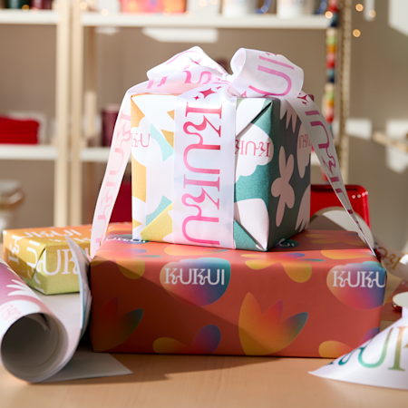As for the wrapping itself, start by making sure the paper or box you choose fits the gift well. If you’re using wrapping paper, ensure there’s enough to cover the entire gift with a little extra on each side. Then, place the gift in the centre and fold the paper over, securing each side with tape for a snug fit. Tuck in the ends neatly and top it off with a jolly sticker or swing tag. With our one-of-a-kind supplies and your wrapping skills, the final product is bound to look (almost) too good to open.