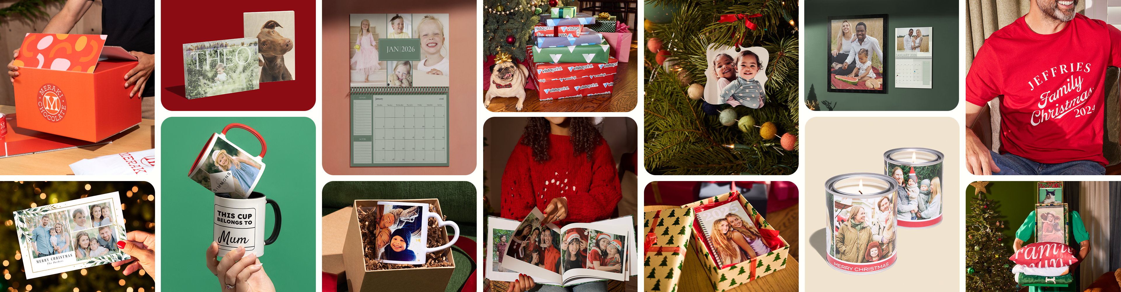 You’re not just limited to photos, either. With our extensive, personalised gift options and product templates, you can showcase – and gift – everything from a monogram to your very own design. Begin by selecting your preferred gift from our collection: calendars, drinkware, wall art, the choice is yours. Then head on over to our design studio where you can upload photos directly onto your gift. Add any personal touches like names, dates and more to make your creation 100% unique. Preview, check out and then you’re done – Christmas gifting made easy. With VistaPrint’s 20+ years of printing expertise, plus a team of design pros ready to help, you can create with confidence and spread cheer like never before.
