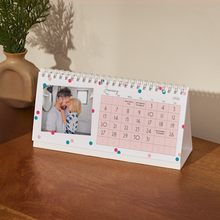 Whether you want a classic wall calendar or desk planner, our design tools and thoughtful pricing make it easy to create a 2026 photo calendar that you (and your wallet) will love. Choose from a variety of themes, colours and patterns. Some of our calendar styles also let you label special dates, like birthdays or company events. You might even find yourself starting a new tradition: a shiny new personalised calendar for your family or a business calendar for every year, printed in rich colours on quality paper.