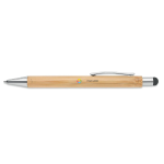 - Push-button ball pen in bamboo with stylus and shiny chrome fittings