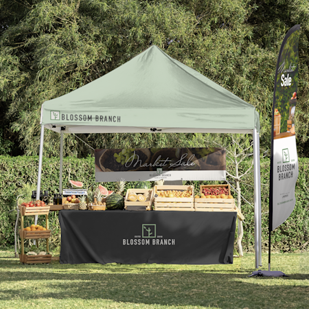 To start creating your display or trade show stand design, think about the size and scope of the events you attend. Is your table display in the middle of a large expo centre? Give yourself a backdrop with a branded pop-up display or stand out to passers-by with a roller banner (which you can set up in just 90 seconds). If you’re working with wall space, make the most of it with an inviting vinyl banner. If you’re setting up or attending an outdoor event, our arch flags offer great visibility. You can continue to develop your look with trade show table covers, tabletop signs and more. Whatever your need, we’re here with custom design options – plus an expert team that’s on hand if you have questions or need advice.