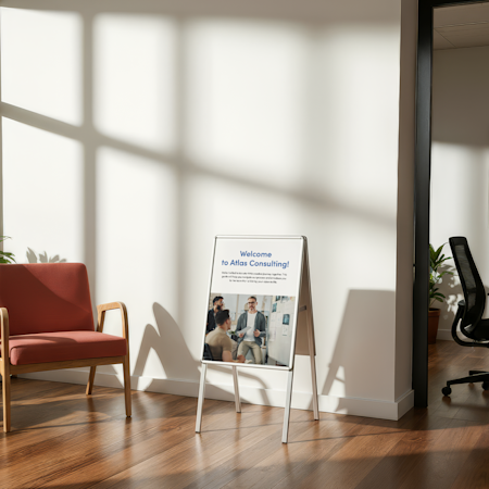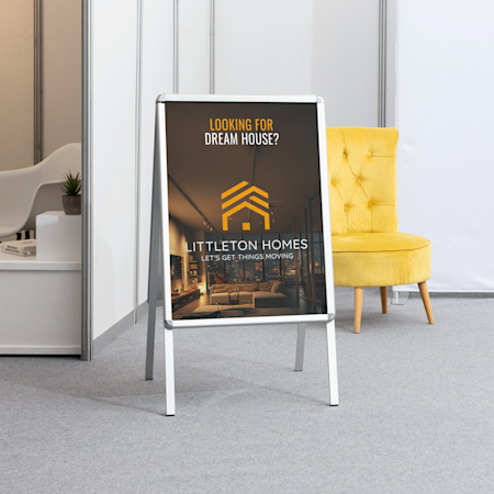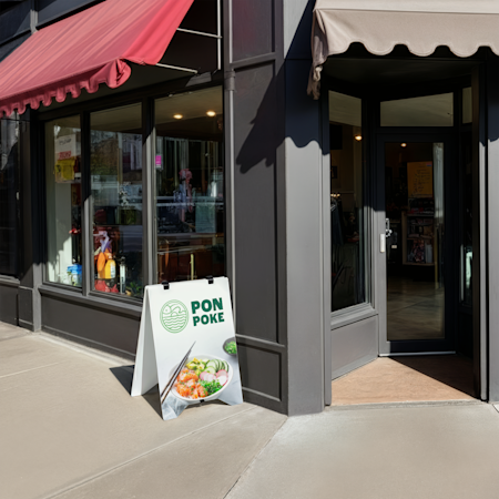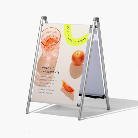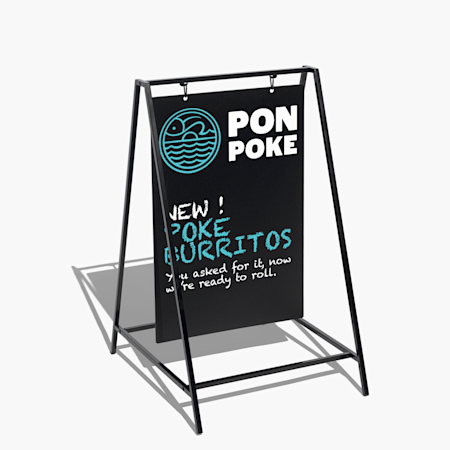 Whether you’re looking for permanent, weather-resistant signage or temporary, portable messaging, VistaPrint has a selection of pavement signs for you to choose from. For example, our waterbase signs are a great option for displaying your business name, opening hours and contact info all year round. Whereas our chalkboard signs are ideal for messages that change on a regular basis, like menus or daily offers. A-Frames make a great choice if you’re promoting your business on the road or at markets and events due to their lightweight and portable frames.