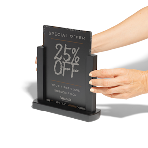 Tabletop Chalkboards make a great first impression, turning everyday surfaces into bold, branded displays. Crafted with durable, double-sided HPL laminate, each board is designed for repeated use — just write, wipe and reuse for menus, promotions or business messages. Add your company’s logo with a crisp, weather-resistant UV print, keeping your brand top of mind for every customer.Flexible set-ups, premium materials